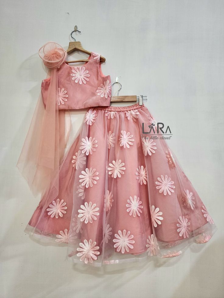 Outfit is made of net fabric and have floral emboridery on it.